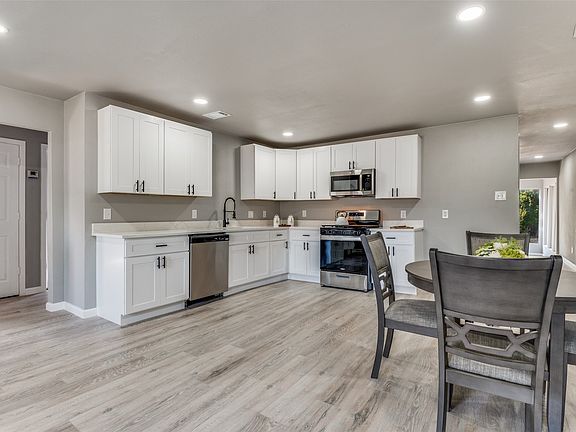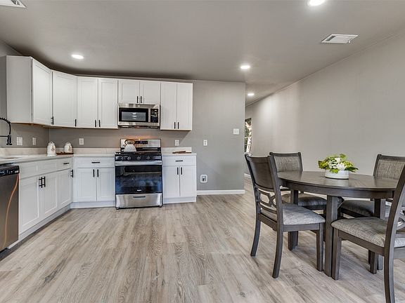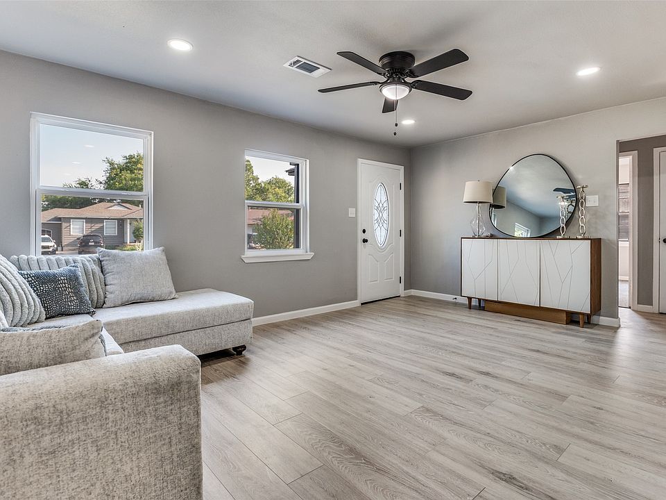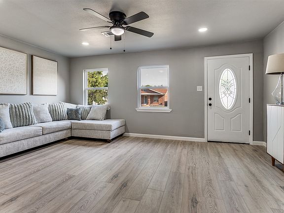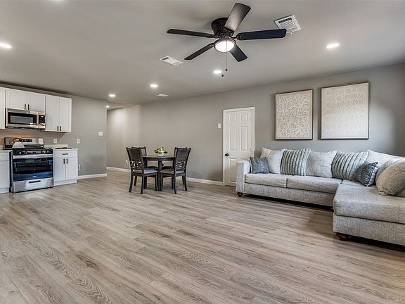 Welcome to this beautifully renovated 4-bedroom, 2-bath home in the heart of Grand Prairie! With fresh modern finishes inside and out, this move-in ready property blends comfort, style, and functionality. Step inside to an open-concept living, dining, and kitchen area featuring wood-look flooring, recessed lighting, and plenty of natural light. The kitchen boasts white shaker cabinets, quartz countertops, stainless steel appliances, and a sleek black faucet, creating a clean and timeless design.  The spacious primary suite offers privacy and a fully updated en-suite bath with a walk-in shower, while three additional bedrooms provide flexibility for family, guests, or a home office. Both bathrooms showcase modern tile work and updated fixtures.  Outside, you’ll enjoy a large backyard — perfect for entertaining, gardening, or simply relaxing under the shade of mature trees. With its fresh curb appeal, updated systems, and prime location near major highways, shopping, and schools, this home is ready for its new owners. Ask about the lender-paid 1-0 interest rate buydown available through our preferred lender. Subject to lender approval.