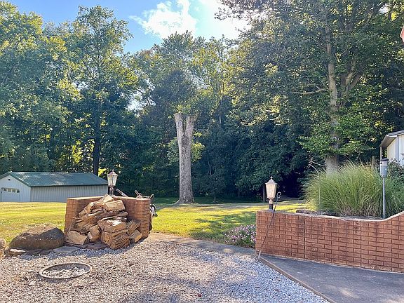 Metal barnWooded lot behind homeMetal roofCorner lot