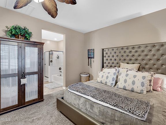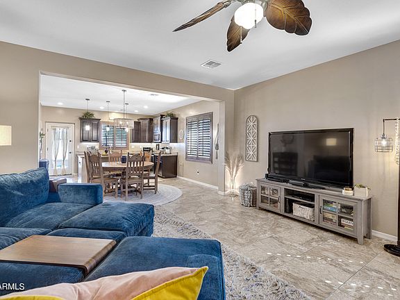 Great opportunity to own this beautiful home in prime Gilbert area. This spacious single level home is minutes from the new Gilbert Epicenter, San Tan Mall, Agritopia restaurants, and close freeway access! The split floorplan offers 3 beds and 2 baths with all bedrooms offering walk-in closets and ample space. The large primary retreat offers a large bedroom and bath with double sinks, a garden tub, and separate glass shower. The kitchen in this home features warm wood cabinetry, an island, stainless steel appliances including a double oven and a window overlooking the back patio. The entire home has wood shutters throughout as well as upgraded lighting! A paver driveway and modern garage door add to the curb appeal! This one is a MUST SEE!!