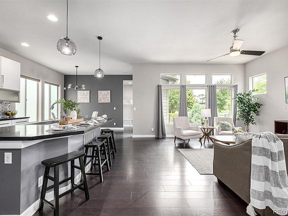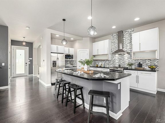 Amazing move-in residence on a premium corner lot in Midtown at Clear Creek! This beauty showcases a contemporary curb appeal with a lush landscape, a cozy porch, and a rear 2 car garage. The impressive interior boasts a polished & modern design with open spaces, tall ceilings, abundant natural light, designer light fixtures, and clean lines, focusing on functionality & simplicity. The spacious den offers a versatile space for work or leisure, while the neat & large great room promotes easy entertaining with living areas that flow seamlessly. The impeccable custom kitchen features white cabinets with a couple of lift-up frosted doors, granite countertops, stainless steel appliances, a farmhouse SS sink, mosaic tile backsplash, and an island. Upstairs, the primary bedroom hosts a large, custom walk-in closet and a sliding “barn” style door that opens to an immaculate ensuite bathroom with a dual granite vanity, a tub, and a glass shower. In addition, this gem has a basement with a large family room, a wet bar, a full bathroom, and 2 bedrooms, one of which has a private bathroom. The exterior offers a side yard with a sizable patio for relaxation or barbecues. Excellent location! Steps away from the Midtown Home Plate Park, close to schools, restaurants, entertainment, and plazas. What’s not to like? Ask about our 3 lender incentives offerings!