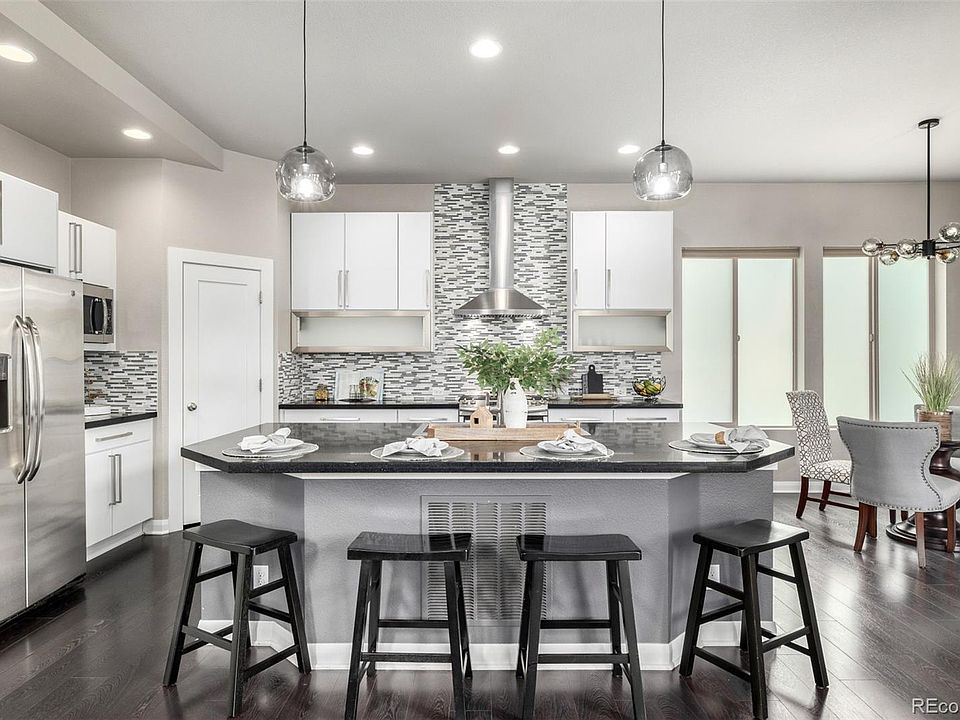 - Description: Wood Floors, Recessed & Pendant Lighting, Mosaic Tile Backsplash