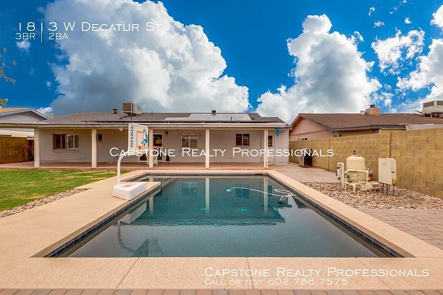 This 3 bedroom 2 bath single family home will immediately catch your eye, entering the home you are greeted with double doors and enter into an open living room with a sliding glass door leading to the backyard. This home features some awesome amenities including solar panels, a formal dining room, a microwave, refrigerator, washer, dryer and a family room perfect for entertaining. There is vinyl and laminate flooring throughout the home. Take a step into the backyard to see a gorgeous pool landscaped with grass and you're just moments from a walking and biking trail! Solar and pool maintenance included in monthly rent! Biking/Walking Path Electric Stove Private Pool Washer And Dryer