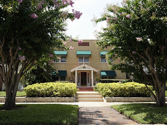 Situated two blocks from Bayshore Boulevard, this striking two-story brick building is in the beautifully preserved Hyde Park District characterized by broad lawns, century old oaks and fine architecture. This grand four-unit building offers brilliant hardwood floors, high ceilings and central heat & air. In addition, The Leslie bestows the convenience of on-site laundry access, off-street parking and secured entrances. Each two-bedroom apartment features spacious closets and built-ins, as well as large living rooms and split bedroom floor plan. This first floor apartment features a renovated kitchen with granite counters and stainless steel appliances.