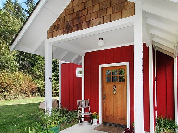 The Island hideaway of your dreams. Five acres of sunny open space, deer-fenced garden & forest with miles of woodland trails at your fingertips; town & ferries nearby. Custom built 2 bedroom, 1.75 bath home, compact & cleverly designed to take advantage of every nook & cranny. 4 bedroom septic. Upscale finishes, jetted tub, maple kitchen cabinets, outdoor pizza oven on entertainment patio. Versatile, permitted 750' sq. ft. outbuilding w/220. Private well w/2000 gallon storage tank.