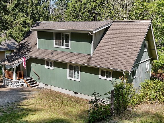 Waterfront living at an affordable price! This adorable home is made for easy relaxation & comfort. With 72' on the river & high bank (no flooding here), this home is perfect as year-round residence, Airbnb or vacation home. You can hear the soothing murmur of river below. Inside, you’ll find vaulted 2 story ceilings, multiple windows in large main living areas which bathe the interior w/natural light, open concept kitchen, dining/living room & office nook. Garden window above sink. Primary bedroom on main floor w/adjoining full bath. French doors lead to huge deck which allows for easy entertaining. Upper level features another spacious bedroom with it's own bathroom & shower. Plenty of outside storage in 12x8 shed. Small gated community.