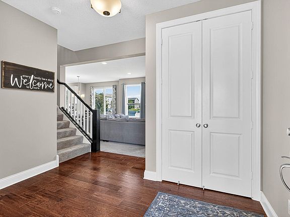 Gorgeous finishes and move in ready 2 story. This 5 bed PLUS office home features 9' ceilings on the main level with 8' paneled doors, a gas fireplace with stone surround, whole home water filtration system, welcoming front porch, granite countertops, spacious center island, tiled backspash, stainless appliances, updated laundry w/ cabinets and a walk in pantry. The upper level offers 4 bedrooms, a private primary w/separate tub/shower, dual vanity and walk in closet. The lower level includes ample storage and a finished basement w/5th bedroom and spacious rec area/flex room. Great location with a neighborhood club house/work out facility, parks/trails, easy access to retail and 194 Lakeville schools.