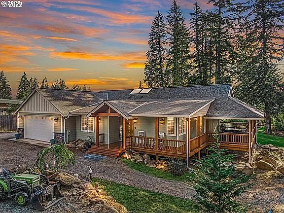 NEW PRICE! Don't miss this beautiful home for all of your dreams to come true of country living within min of all amenities and HWY 213. Single level ranch on 1+ flat acre. Beautiful view of Mt. Hood, complete wrap around deck with a covered area, high end finishes, live edge bar, double oven, claw foot tub, built-in espresso machine. Built in 2019, open concept 3 bed/2ba, woodstove, heat pump, new septic system, oversize garage, RV parking w/ hookup. Amazing natural light throughout.