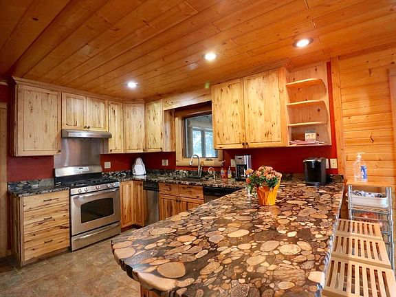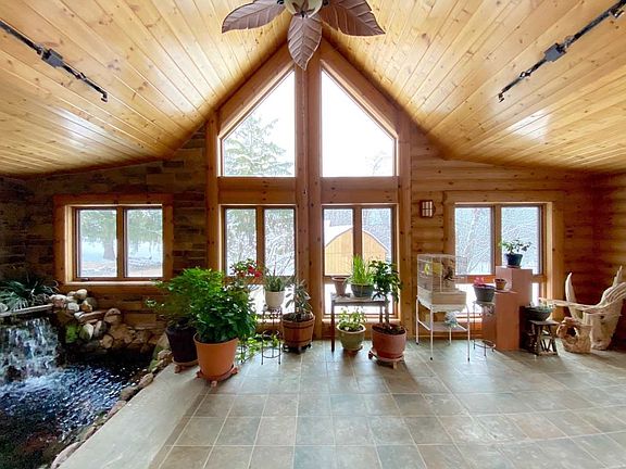 Awe inspiring log home on an amazing 1.52 acres sitting high on top of the rolling hills of Dubuque County. This home was built in 2009 with the highest quality craftsmanship and attention to details. You'll love the peaceful setting located just minutes North of Dubuque. The spacious floor plan offers an incredible living room with 2 story vaulted ceilings, stone fireplace, kitchen with stainless steel appliances and granite counters, solarium with indoor pond, and much more. Features include hardwood floors, an elevator, large deck, screened porch, and wine bar. Four of the bedrooms are full suites offering full bath, whirlpool tubs, and kitchenettes. There is an attached 2 car garage, 22ft x 30ft barn, and 2 heated greenhouses on the property. This home has fiber optic internet available and would be ideal for working from home.