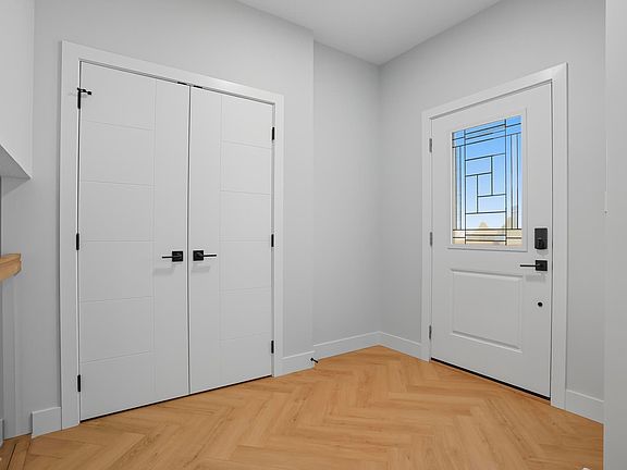 This BRAND NEW walkout home on a spacious pie lot offers the perfect blend of luxury, comfort, and functionality. The main floor features a bedroom and full bathroom—ideal for guests or multigenerational living. The open concept layout showcases an elegant open stairwell with glass railing, gorgeous herringbone floors, and a show-stopping chandelier that adds a touch of sophistication. The chef-inspired kitchen is equipped with modern finishes, premium cabinetry, and a convenient spice kitchen for all your culinary needs. Enjoy the serene views from your deck overlooking the dry pond, creating the perfect space to relax or entertain. Upstairs, you’ll find 3 spacious bedrooms, bonus room and a flex room—perfect for entertaining. The primary suite is designed to impress with a spa-like ensuite and a walk-in closet. A convenient upstairs laundry room adds everyday ease. The walkout basement is unfinished and ready for your personal touch. Appliances and blinds included!