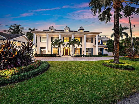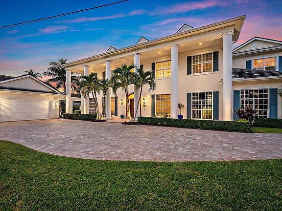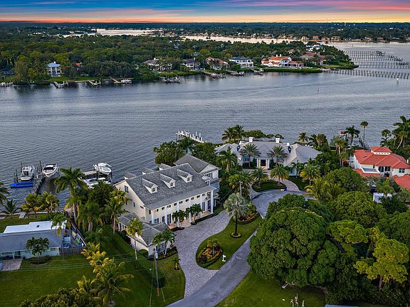 Discover this magnificent custom estate on the Loxahatchee River, featuring stunning waterfront views and breathtaking sunsets. With 7,900 sq. ft. of luxurious living space across three levels, this home boasts 6 bedrooms, 7.1 baths, and a private guest suite, complete with an elevator for your convenience. Step into the grand foyer with a floating staircase, leading to elegant formal living and dining rooms, a gourmet kitchen with a butler's pantry, and a family room with a stylish bar. Enjoy leisure time in the billiard room or serene moments in the study/library. This estate showcases exceptional craftsmanship, including an exquisite remodel of the primary suite and bath, featuring an opulent custom dressing suite. The newly updated garage includes a gymnasium with water views, and the third level offers ample space for various uses, making it a versatile part of the home. For added comfort and versatility, the estate includes a generously sized attached guest home with a private entrance, boasting its own kitchen, living room, bedroom, and bath.
