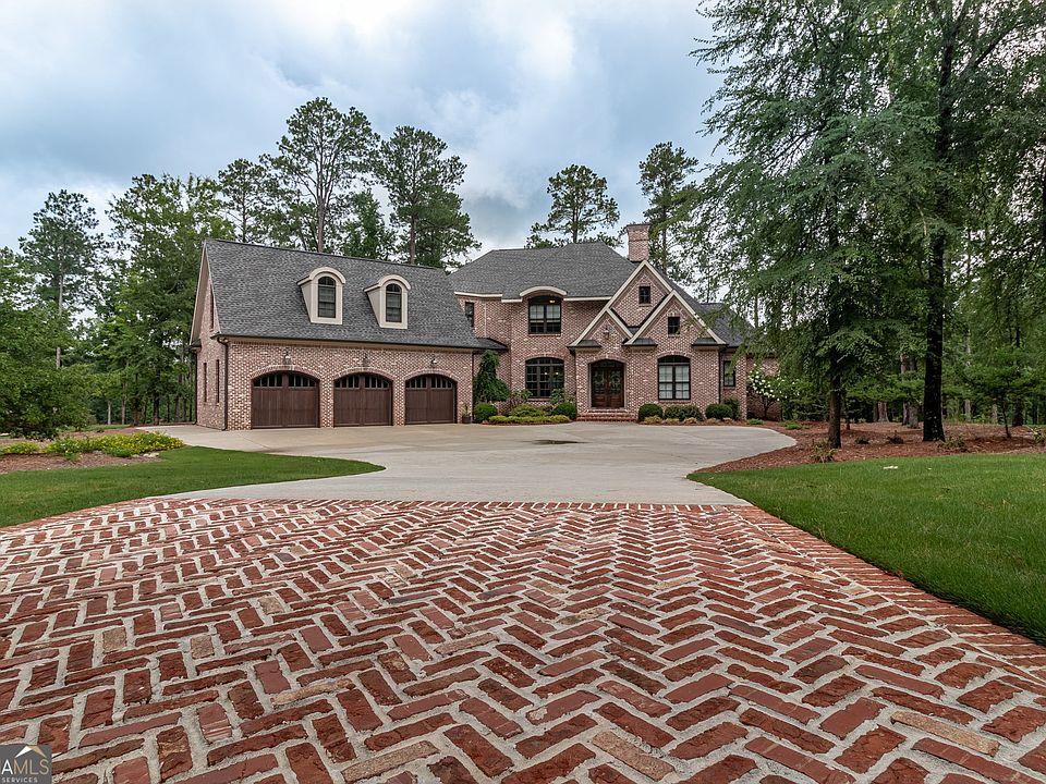 Gorgeous, stately all brick home situated on over an acre behind the gate of Riverwood Plantation in exclusive Champion's Retreat. Perfectly located, overlooking the green for hole #4 and the tee box of hole #5, this home is second to none! Featuring 5 bedrooms and 5.5 bathrooms, this custom-built beauty offers 5,165 heated square feet, and has all the details one could hope for, including 10ft ceilings, 8ft solid wood doors, wide-plank hardwood floors, & granite counters throughout! Herringbone brick details welcome you as you pull into the generous driveway and up to the distinguishing 3 solid wood door, triple car garage (w/ golf cart garage and utility shelving in back). At the arched entryway, you'll notice the pine ceiling front porch with gas burning lanterns and beautiful solid wood French doors. The two-story foyer welcomes you with floor to ceiling judges paneling and above you will find an arched balcony, adorned with wrought iron railings. The stately dining room is trimmed out to greet its guest upon arrival and welcomes the perfect flow for entertaining back into a spacious great room with bricked fireplace, built-in shelving, solid wood mantle and coffered ceilings. From the great room, you'll notice the beautiful brick arbor transition into the kitchen. This lavish kitchen is a chef's dream! With the abundant island, offering seating for 6, stainless appliances to include a double commercial refrigerator, oversized 6 burner gas cooktop, dual built-in ovens situated in custom solid wood and glass lit cabinetry! The main floor Owner's suite is a complete oasis with ensuite featuring chandelier, marble topped vanity and makeup vanity, dual entry to the massive walk-in multi head and body spraying shower with marble accents and a timeless clawfoot tub. Storage will not be an issue for any fashionista either, in the completely custom closet! A 2nd bedroom with bath makes a convenient study or main floor guest room. Walk up the wrought iron railed stairs to 3 additional generously sized bedrooms (all with their own bath) and a large flex space used as an exercise room (both with surround sound). The beauty continues with French doors leading out to the large, flat backyard. A maturely manicured property with 2 patios (1 covered with pine ceiling and the other uncovered) welcomes you to enjoy the outdoor space as well! No worries on the 5 bathrooms, you will never run out of hot water since it also offers a gas tankless water heater. It is no surprise this home has an impressive golf tournament rental history!! No detail has been missed in this completely custom home! The sellers are set and ready to make this your buyers next home.