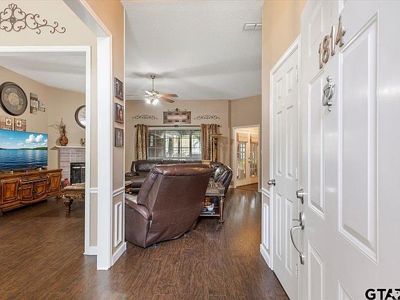 Beautiful home on a large, corner lot in the Waterton subdivision. This 3/2 has been updated and is ready for new owners. Inside you will find high ceilings, crown molding, custom blinds and beautiful flooring. Spacious living room with cozy fireplace that is open to the formal dining room. Kitchen has refinished cabinets, stainless steel appliances, new dishwasher, granite countertops, tile backsplash and window above sink. Casual dining area has bay window and laundry room offers great storage! You'll love the generously sized primary suite with a corner garden tub, walk-in shower, 2 vanities, 2 walk-in closets and private water closet. Stepping out to the back yard, you will find a private covered patio that has been newly extended, pergola built and 220V plug for hot tub. Beautiful mature oak tree shades the patio area. Other additions include new A/C unit, hot water heater and vinyl plank flooring in living and formal dining. Located right by Lake Tyler and price to sell!