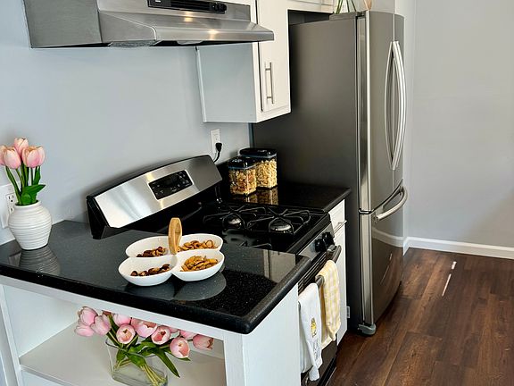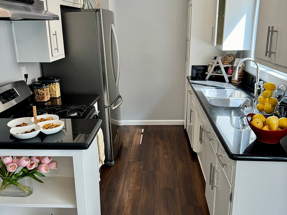 *Wall-mounted 65" LED television included Must see - 1 bedroom unit in a quiet apartment complex close to Hollywood/Western metro subway stop and 101 freeway. This unit includes water and trash services. Located in Thai Town close to Hollywood, Los Feliz and Griffith Park. *French door refrigerator *Wood flooring *Remodeled bathroom with tile floor, medicine cabinet and vanity *Stainless range and hood *Granite kitchen counters *Cabinets with modern bar pull handles *Air Conditioning *Fresh new paint throughout *Crown molding *LED light fixtures throughout *Laundry room on site *Covered parking space included