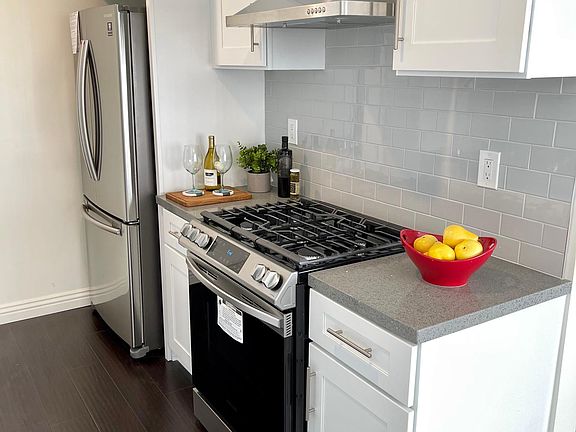 1 Month Free Rent available upon approved credit. This means your out of pocket cost for rent is $2,200 per month over a 1-year lease. Large 2-bedroom unit with large living room and dining room. Completely renovated 2 bedroom / 2 bath unit in a quiet apartment complex close to the 101 freeway and metro stop at Hollywood and Western. This unit includes water and trash services. Located in Thai Town / Hollywood / Los Feliz areas. *1 month free with a 1-year lease *New wall mounted 65" television and S-onus sound bar included *New LED light fixtures throughout *New wood laminate flooring *Gorgeous brand new kitchen with white shaker cabinets, grey sparkle quartz counter top and subway tile backsplash *Brand new range, brand new side by side refrigerator, brand new dishwasher and brand new range hood. *Remodeled bathrooms with white shaker vanity, medicine cabinets and a new shower *Air conditioning and ceiling fans *Mirrored closets in bedrooms *Lots of storage areas *New paint throughout *Crown molding *Laundry room on site *Off street parking