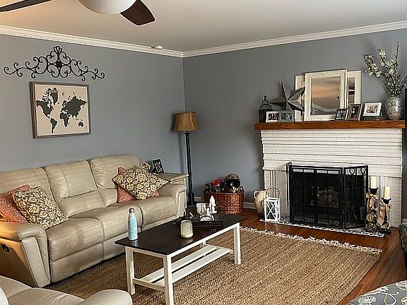 This beautiful brick home, built in 1953, has been carefully updated, while retaining many of its charming vintage features, such as the original hardwood floors and gorgeous brick fireplace. The spacious living room with gas logs is perfect for family time as well as entertaining. The adjoining dining room is accessed through an archway, in typical 50’s style. The kitchen could easily be an eat-in, and offers SS upgraded appliances, including a new dishwasher, gas range with center grill, refrigerator, and microwave. In addition, there are solid surface counters, a built in pantry, and a garbage disposal. The guest bathroom, in the hallway, has been updated with new lighting, tile tub surround, and tile flooring. Two spare bedrooms are located nearby, one with custom built shelving on two walls. The extra wide hallway leads to the master suite that includes a shower, linen closet, and a super convenient enclosed laundry closet. There are so many extras such as ceiling fans in all bedrooms and the living room, 2 inch blinds throughout, gorgeous glass doorknobs on many interior doors, a new NEST for perfectly controlled comfort, a custom designed tile hearth, and the entire interior was painted shades of soft grey less than two years ago. The exterior has been carefully updated to reflect the “farmhouse” style - charming stone walkway, custom wood shutters and porch pillars - even a matching mailbox! Just off the kitchen, a large covered patio expands the living space, with plenty of room for back yard entertaining. Perfect for kids and pets, the yard is completely fenced, and a custom designed “fort” remains! A nice sized shed will also convey. Just off of the patio are stairs leading to an enormous, totally encapsulated walk-in basement. Use as a great workshop or for storage. A new sump pump was installed within the last three years. The sprinkler system is manually controlled, but can be easily converted to automatic. You won’t find a more perfectly appointed, move-in ready home, in the Hammond Hill school district. Offering a one year Home Warranty and $1500 toward closing costs.