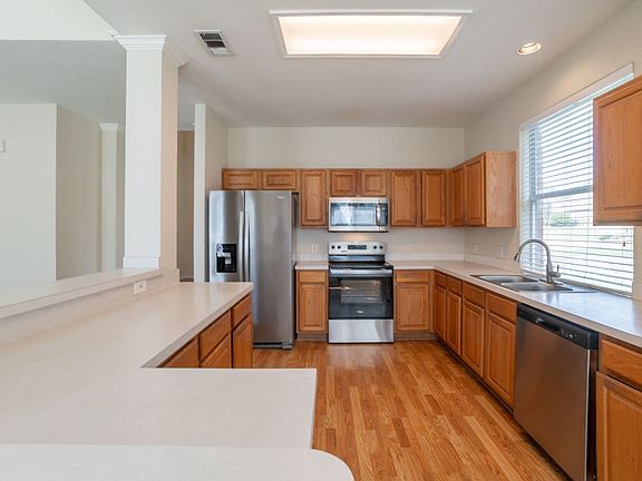 This spacious two-story home features 4 bedrooms and 2.5 bathrooms with an open floor plan perfect for everyday living and entertaining. The kitchen boasts a convenient bar, pantry, and adjacent breakfast area, while the living room features a cozy fireplace. The primary suite offers a separate tub and shower and a spacious closet. Step outside to enjoy the wood-fenced backyard and a 2-car garage with rear access. Schedule a showing today! One or more photos have been virtually staged.