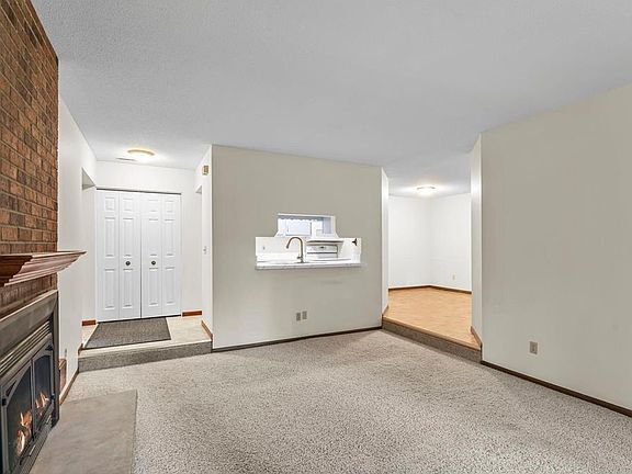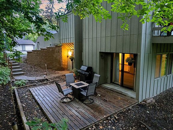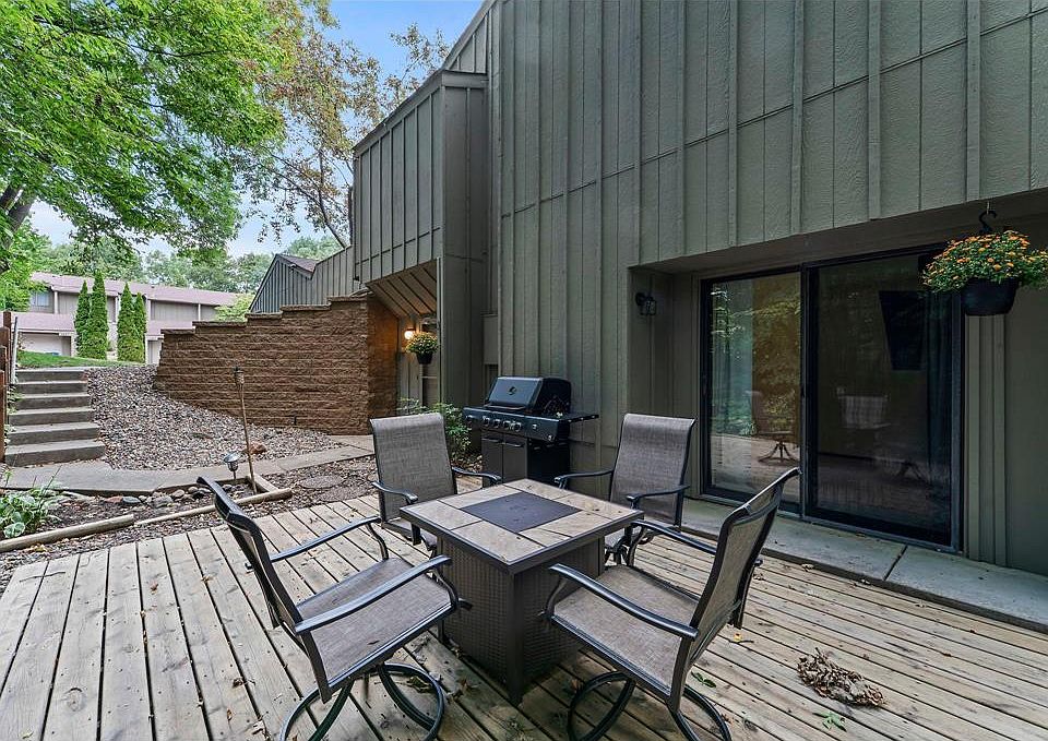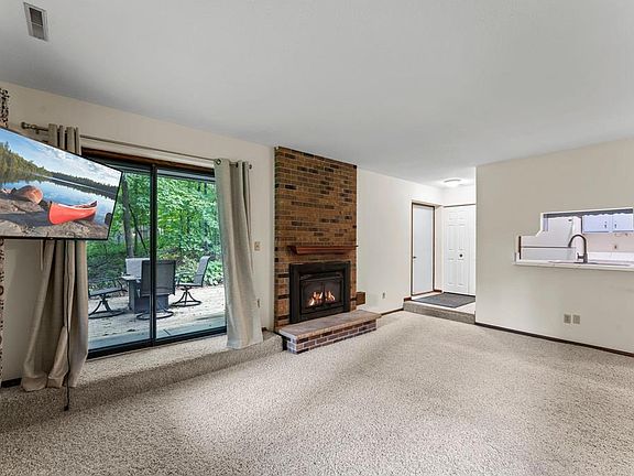 Tucked into the peaceful Chelsea Mews/Woods community, this single-level condo feels private and serene, surrounded by mature trees offering beautiful views. You'll love the private entry and the one-car detached garage for extra convenience. The bright living room features a brick gas fireplace and opens right out to the deck and green space-perfect for indoor/outdoor living. The kitchen has updated counters and painted cabinets that add a pop of color, plus a dedicated dining area. Two spacious bedrooms, a full bath, and in-unit laundry make everyday life easy. Community perks include access to three pools, tennis courts and walking trails. Just minutes from Parkers Lake with its beach, playground, and ball fields, and located in the award-winning Wayzata school district, this condo perfectly blends privacy, nature, and convenience.