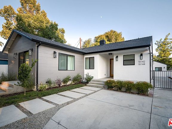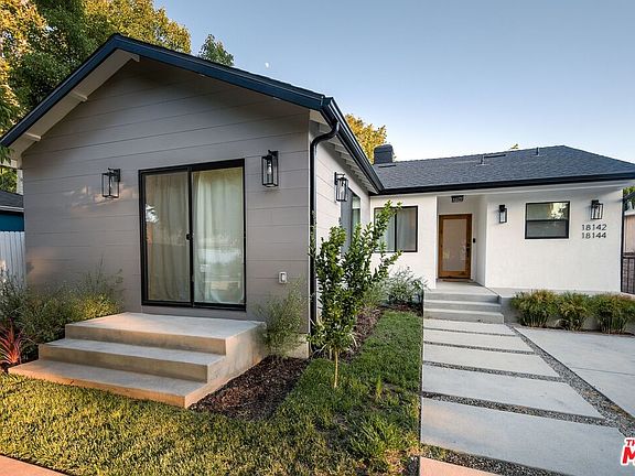 Back on the market! Previous buyer did not perform. A spectacular newly re-built, single level modern home, located in a private neighborhood at the end of a cul-de-sac. This property includes TWO HOMES with separate addresses on a single lot! Use it as an income property or live in style! The exceptional design starts with a chef's kitchen, outfitted with custom cabinetry, stainless-steel appliances, skylights, and a breakfast bar. Continue to the open concept dining and living rooms featuring vaulted ceilings, skylights, and abundance of natural light. Walk through the hallway towards the 3 bedrooms + bonus room (Potential JUNIOR ADU) where you'll find serenity in the Master bedroom which offers a view into the backyard, walk in closet, and a luxurious master bath lined with unique Turkish marble stone and double vanity. Finally, the PERMITTED ADU is tastefully done with stainless steel appliances, private AC, its own laundry hookups and backyard access. ADU can lease for ~$1500