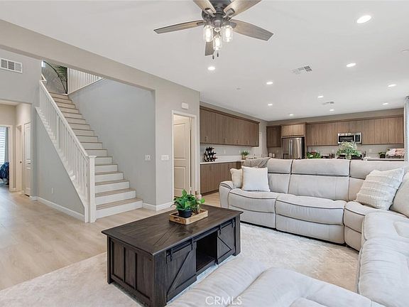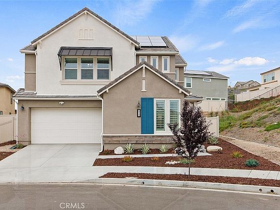 Model status Skyline Sola Home with 4 bedrooms and 3 baths, and OWNED SOLAR! This beautifully upgraded home is bright and neutral throughout with luxury vinyl plank flooring, recessed lighting, ceiling fans, plantation shutters and custom window coverings. The coveted open floor plan makes for seamless entertaining and features one full bed and bath downstairs. The kitchen flows effortlessly to the dining, family room and backyard and features gorgeous quartz counters, upgraded warm thermafoil cabinetry, built in extra counters and cabinets and a spacious pantry. Relax in the Family room near the built in electric fireplace surrounded by custom shiplap wall complete with mantle. At the top of the stairs you will find the perfect reading nook or workspace. Flow into the generous sized primary bedroom and ensuite featuring timeless white quartz counters with dual sinks, an oversized walk in shower and large walk in closet! Also upstairs find the spacious laundry room and 2 additional bedrooms that share a jack and jill bath with dual sinks and a shower/tub combo. The private easy to maintain backyard features lush grass with plenty of room for kids and pets to play! 2 car attached garage complete with EV charger! Enjoy the gorgeous Lookout with a playground, clubhouse, a sparkling pool and spa, kids wading pool, splash pad, BBQ's, Glass enclosed gym all overlooking the stunning views of the valley. Additional pools, parks and clubhouses are in the works within walking distance. Enjoy miles of hiking trails all around, brand new shopping center and streamlined access to the 14 freeway through Golden Valley or Sierra Highway. This is a home to keep in the family for year to come!