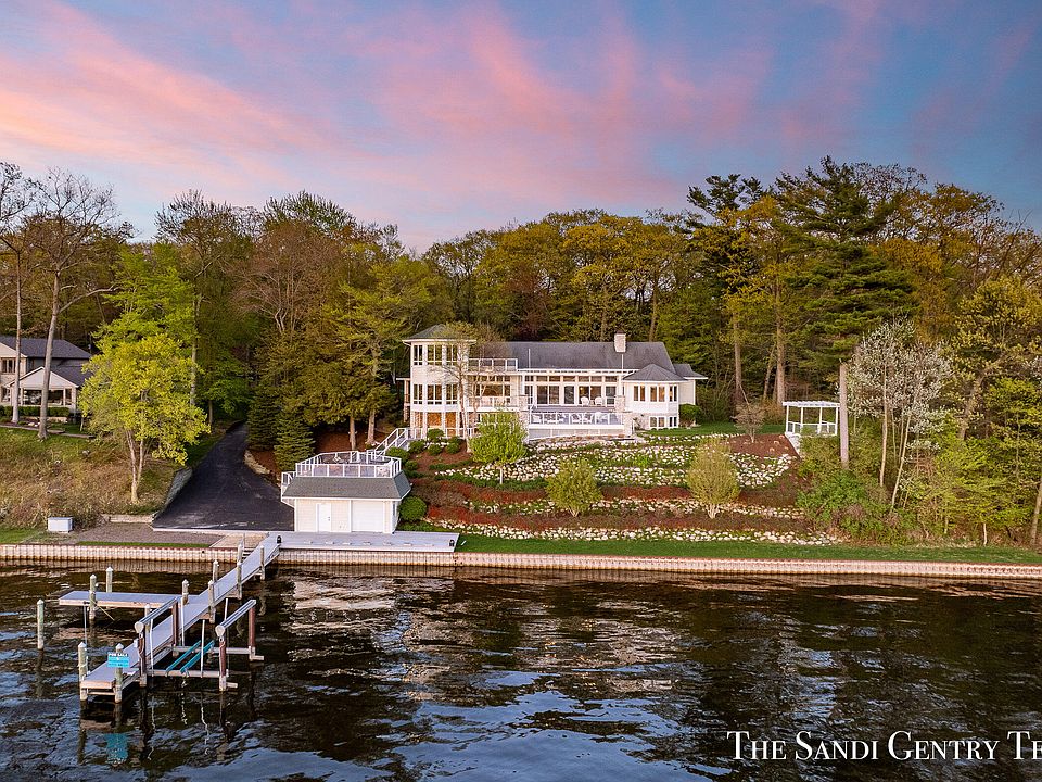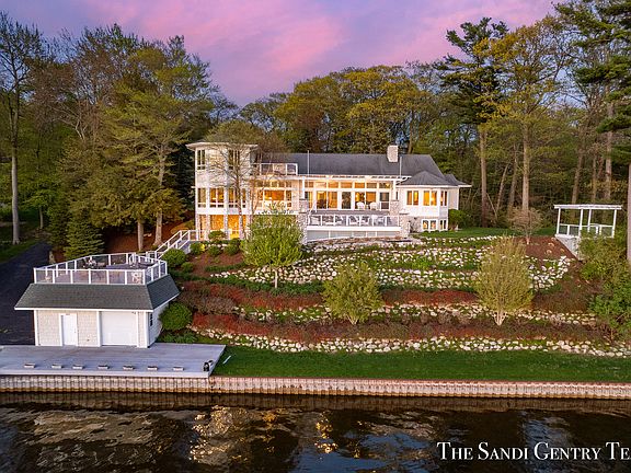 Luxurious living on 230' Spring Lake water frontage, this impeccable Spring Lake Water Front Estate is situated on a 1.5 wooded acres, providing serenity and privacy. Experience million dollar views from the multi-level decks that span the home and enjoy the picturesque scenery and landscaping. Boasts 6 bedrooms and 5.5 baths and over 7,300 sf of expansive rooms throughout the home, there is tons of space to relax and unwind, as well as entertain. The sprawling gourmet kitchen features commercial grade built-in appliances and huge center island. Multiple living spaces throughout the home offer breathtaking water views including the Walk out Lower Level. The upper level provides an incredible primary suite with private balcony, and ensuite providing you a luxurious retreat via Elevator. Boat house and Dock provides storage and easy access to the beautiful waters of Spring Lake.