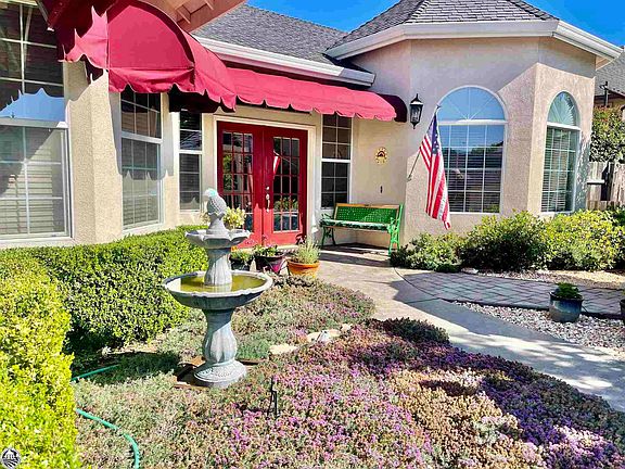 ONE LEVEL convenience in a superb floor plan. Built in 2005 and many great amenities added by current owners. Darling gazebo surrounded by flowers and low-maintenance native perennials. Sexy curb appeal with red awnings and matching red front double french doors. House is set back 40 feet from the road. Where is the garage? In the back, so the greenery, gazebo, delightful entry, and hexagonal master suite architectural feature can shine in front. Are you looking for a very large master suite? Here it is, with round top windows and on the opposite side of the house from bedrooms 2 and 3. Two walk-in closets. Master bath with two vanity sinks areas, jetted bath tub, roomy tile shower, closeted toilet and tile floors. This large master bath even has vaulted ceilings and crown moldings. Crown molding continues throughout the great room with 10 foot high ceilings. Cozy living room with propane fireplace on a slate rock hearth with oak mantel is semi-separate from the great room. Dining area will fit the largest table-there is seating space for 20 at least! Plus a bar height counter to seat three, and a breakfast nook overlooking the garden with a fountain. The kitchen is elegant with black marble countertops, under-counter lights, and pantry closet. The room with the arch can be used as a more formal dining area, or a family room. Bedroom 2 has sliding door to back patio. Seven ceiling fans with light kits keep the air moving and the rooms bright on cloudy days. Otherwise the numerous windows bring the sunshine in. Regulate the light with wood blinds. Pleated shades on the front glass doors for when the setting sun comes in too strong. And also on the back french doors for when the rising sun does the same. In the ceilings are "hidden" fire sprinklers which drop down in a fire. Don't worry about power outages- there is an included 7500 watt whole house generator. Just flip the switch. At this 3,000 elevation you get occasional snow, but it won't affect your satellite TV reception because of the "warmer assembly" on the dish to melt the snow. This elevation is cooler than Sonora or Jamestown, but when it is hot the extra insulation and new larger A/C condensing unit ($9,000) keep you cool. Add to that the four attic fans- 2 electric and 2 "passive solar", (plus the SEVEN ceiling fans) and cooling is a breeze. Exhaust fans in kitchen and both bathrooms. The hot water heater was new last year and has a circulating system to bring it to your faucets faster. The clothes dryer is electric, but plumbed for propane gas if you want to switch it. Same with the cookstove: plumbed for propane. The drip irrigation system for the landscaping is "set it and forget it", and all the weed cloth installed before planting was double layer. The patios front and back are concrete, so no wood decks to maintain. (See if your home insurer gives you better rates with fire sprinklers, stucco siding, and no wood decks). Concrete driveway won't need sealing maintenance (like asphalt does). In balmy weather eat in the gazebo, or at the table near the barbecue in back. The detached garage has finished and painted walls, shelves, cabinets, and 220 volt wiring for shop equipment. A tool shed behind the garage is 8' X 6', handy and hidden. Underground power means no ugly power poles and lines. Home inspection done July 2022 and all repairs are done. Pest Inspection done. On TUD public water and sewer. In the Sonora High School district. Seller says price is negotiable! 2-page flyer available