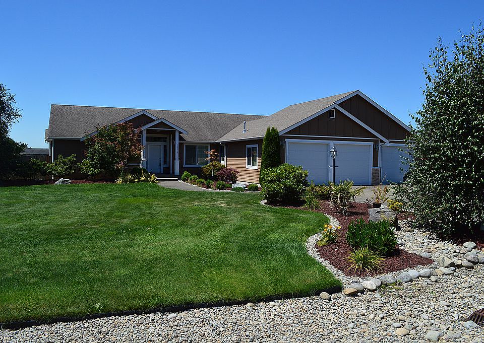 Stunning single story home with fabulous split bedroom floor plan. Very flexible spaces, 4 bedroom plus den/office/formal dining. Hard surface floors throughout. Welcoming entry, vaulted ceilings, gas fireplace, large covered patio, established gardens, separately fenced hen house and orchard with fruit & nut trees! 3 car garage. Property is fully fenced. Room for RV and drive in access to backyard. Heat pump, stainless appliances. HOA owns appx 30 foot buffer beyond fence.