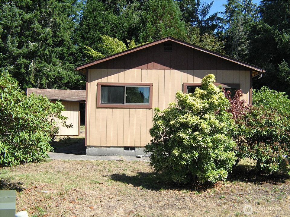 Vintage Single-Wide Retreat on Triple Lot- Secluded & full of Character. Tucked away in a lush pocket of old growth rhododendrons this home with addition and cozy Wood burning fireplace has timeless appeal. Large 576 sq ft shop has space for hobbies and spare sleeping quarters. Gravel path takes you to a separate bath house for convenience and guests. 2 driveways on this 150 x 104 lot gives you plenty of space for parking and an RV. Close by, is Twin Lakes stocked with fish and perfect for kayaking. Seller is offering owner financing.