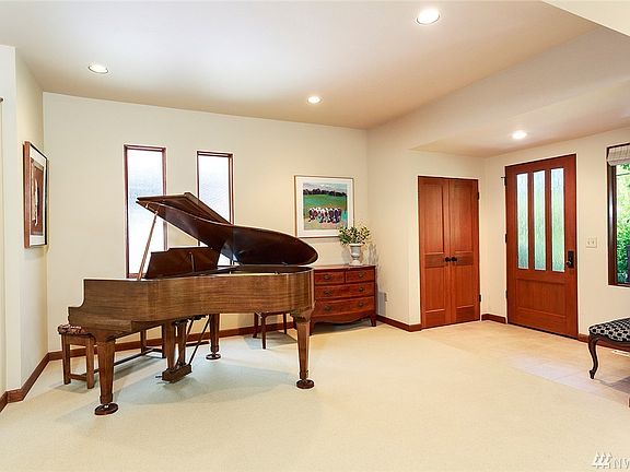 Cedar shingled 2-story with pitched roof and inviting front porch on quiet leafy street. High ceilings, neutral color palette and exotic Bubinga wood cabinetry throughout. Large livingdining area with walls of windows and gas fireplace family room with built-in cabinetry kitchen with granite counters, top-notch appliances and French doors to deck and lovely backyard with water feature 4 bedrooms 2.25 baths basement with rec and bonus rooms. Beautiful professionally landscaped grounds.