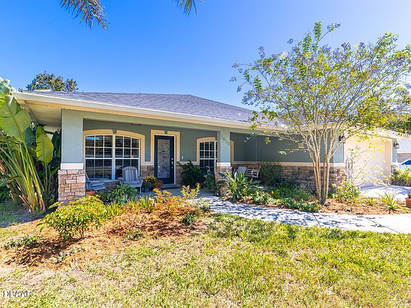 Now offered at a BRAND NEW PRICE this exceptional, custom-built LAKEFRONT/POOL HOME situated on over an acre of property is ready for its new owner! This 4 bedroom/2.5 bath home offers a serene escape while maintaining close proximity to the beaches, parks, shopping and easy access to I-95. Enjoy your morning coffee or evening cocktail on this home's large front porch overlooking the lake that is stocked, primed, and ready for fishing. The kitchen boasts exquisite granite counter-tops, top-of-the-line stainless steel appliances, custom designed cabinets, water filtration system, and a large breakfast bar area that overlooks the living room space. Quality hardwood floors and tile throughout the home for easy care and maintenance. Enjoy the comfort and privacy of the large owner's suite featuring two large separate walk-in closets, his/her vanities, oversized standing shower, large soaking jacuzzi tub, and separate water closet. Two sizable guest bedrooms are located on the opposite side of the home along with a guest bathroom leading out to the pool area. The versatile 4th bedroom is primed to be your office, guest room, or personal haven complete with a closet and inviting French doors. The home's beautiful screened-in pool area provides the perfect oasis for entertaining friends and family all year round. In-house laundry for ultimate ease and comfort. The home also features an oversized, 2.5 car garage perfect for multiple vehicles, additional storage, golf cart and/or lawn equipment. Expansive fully-fenced yard with irrigation for gardening, ample parking, RV and boat storage. No HOA. Copy of independent appraisal available upon request. Your dream home awaits at a new competitive price! All information must be verified by Buyer, all measurements are approximate.