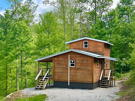 This New rustic cabin was just completed and has so much character. Rustic tin ceilings, pine wood walls, sliding barn doors. It is nestled amongst 10.41 acres with water frontage on North Fork of Rockcastle River. Cabin has kitchen /living combination, 2 bedrooms, 1 bath with shower and laundry area. Heat & air mini splits on each level. Cabin is approximately 709 SF with 1 campsite hook-up included. Cabin has septic, water and electric. Campsite has electric and water. This is tract 8 being 9.11 acres & tract 11 being 1.3 acres being sold together for a combined 10.41 acres. Down Home Camp is a unique development nestled along The South Fork of the Rockcastle River. Located just across the Laurel County Line into the edge of Jackson County on Baldwin Rd McKee KY. Offering 14 individual tracts beginning at 40,000 and going to 225,000 Some tracts have rv hook ups with water, some tract have small roughed in cabins with septic, water and electric and with a camper hook up, some tracts are just land only and some sites have river or creek frontage. Tracts are from 1.68 acres to 10.41 acres. Camper hook-up has 1-50 amp 240 outlet, 1-30 amp 120 volt outlet
