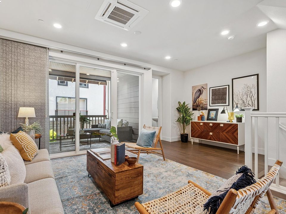 Built in 2016, this 3 bed, 3.5 bath tri-level home offers 1,727 sq ft of thoughtfully designed living space in a prime central location. Each bedroom features its own en suite bathroom, offering ideal privacy and comfort. The first floor features a private bedroom with a full bath, including a stall shower. On the second floor, enjoy an open-concept layout that seamlessly combines the kitchen, dining and living room, along with a convenient half bath. Highlights include recessed lighting, LVP flooring, a built-in bookshelf, and a patio slider to a covered outdoor lounge area. The kitchen is equipped with stainless steel appliances, glass tile backsplash, dark gray quartz countertops and plantation shutters. Upstairs, the primary suite boasts a double vanity and tiled stall shower with a built-in bench. The third bedroom features its own bathroom, complete with a shower over the tub, and the laundry room is conveniently located on this level. The attached two-car garage features epoxy flooring, overhead storage and an EV charger. Enjoy easy access on and off the island via Park St Bridge or Webster/Posey Tube. Close to Marina Cove Park, shops, restaurants and local markets.