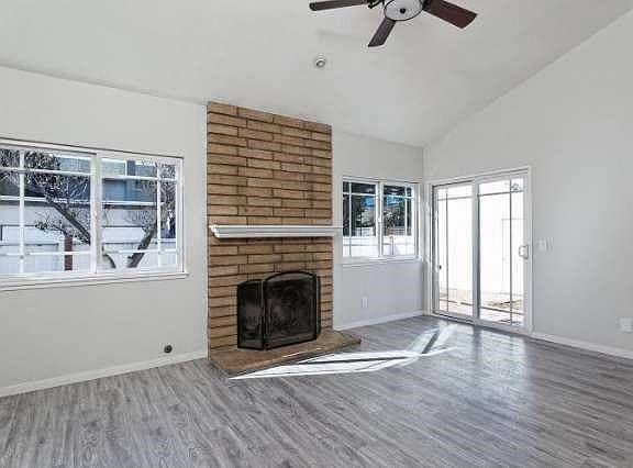 This beauty has just undergone a designer's renovation! Huge vaulted ceilings give this home an open and airy feeling. Brand new flooring throughout, including laminate, carpet and tile. Chef's kitchen complete with new cabinetry, quatrz counters, and brand new stainless steel appliances! Both bathrooms have new tile, vanities and toilets. Master bedroom overlooks the backyard. With new paint inside and out, all new lighting fixtures and hardware, you will feel right at home when you walk in. Don't miss this easy regular sale!
