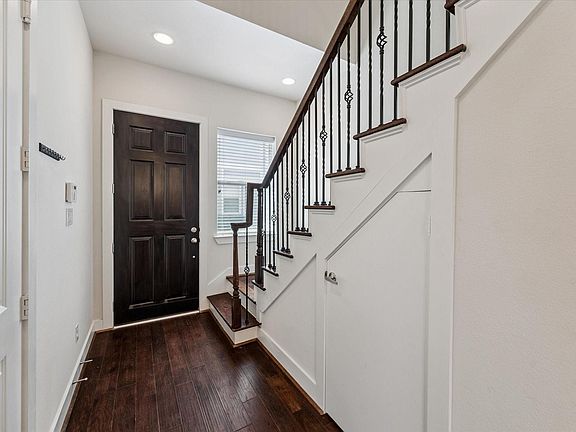 Charming 3-bedroom, 3.5-bath residence located in a gated Spring Branch community, only a short drive to City Centre, the Galleria, Memorial Park, and major roadways including I-10, Beltway 8, and Hwy 290. Designed with first-floor living, this two-story home highlights soaring ceilings, an open flow, rich wood flooring, and generous natural light. Every bedroom is complete with its own private bath and walk-in closet. The kitchen showcases ample counter space and a 5-burner gas cooktop an excellent setup for gatherings. Upstairs, you'll find a versatile loft-style area perfect for an office or media room, along with a laundry space conveniently positioned near the bedrooms. The primary retreat offers dual walk-in closets and a luxurious spa-inspired bath. Outdoor features include a covered patio, yard space, and evening lighting. Appliances such as washer, dryer, and refrigerator remain with the home.