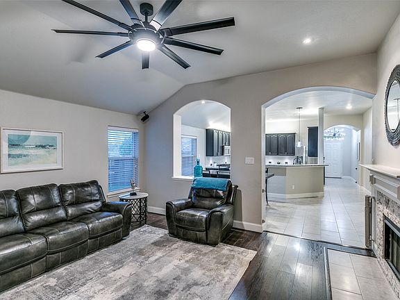 Inside, the thoughtfully expanded floorplan is loaded with updates: new flooring, upgraded lighting, fresh paint, modern appliances, a new water heater, surround sound speakers, and an elegant fireplace surround. The open layout creates a seamless flow for both entertaining and everyday living.