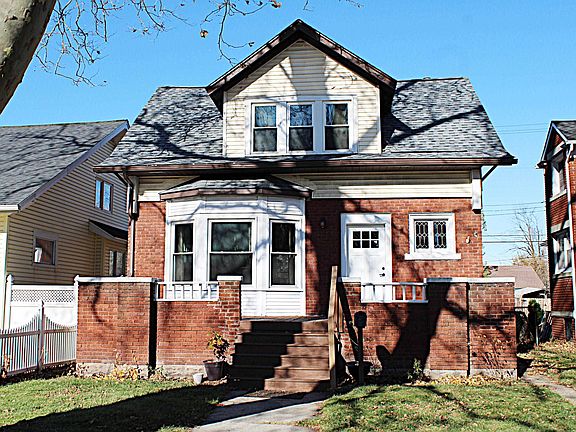 Beautiful home with many updates. Newer roof and windows. Original beautiful oak flooring some of which has been redone. The oak molding is amazing. Kitchen is updated with white cabinets. Great open floor plan. This brick home has a hugh porch to enjoy the front yard and entertain. Awesome bay window in the oversized livingroom which connects to the dining area. Some updated light fixtures. This home has a lot of light and is bright with lots of windows. Patially finished Basement and 2 car garage. It even has a bath and a half!! The 3 large bedrooms upstairs all have walk in closets. Perfect for a large family. All the kitchen appliences will stay. Good size back yard for bon fires. Near shchools and the expressway.