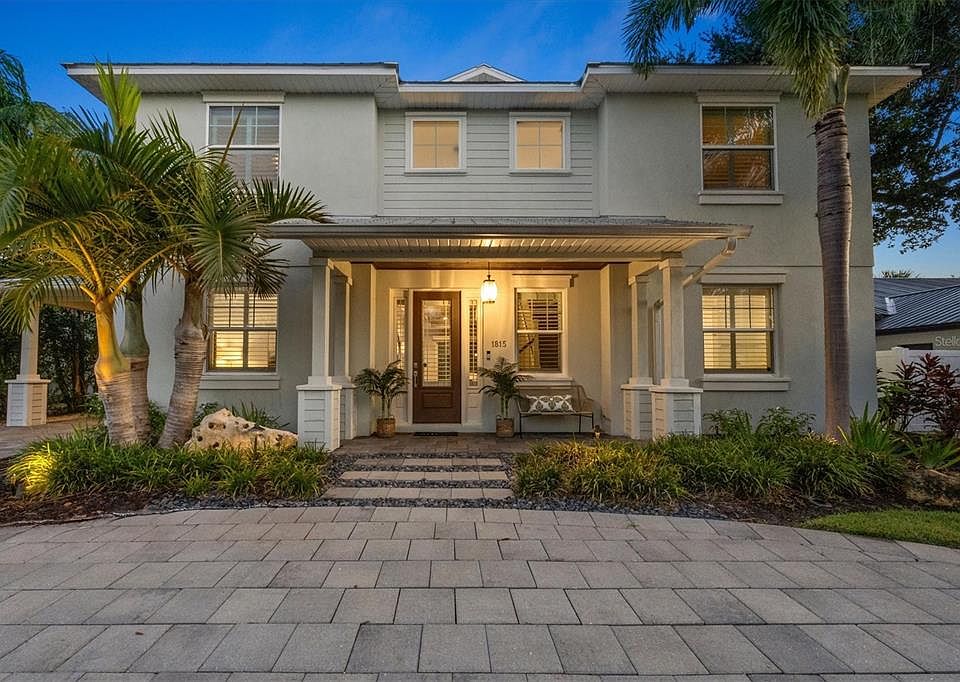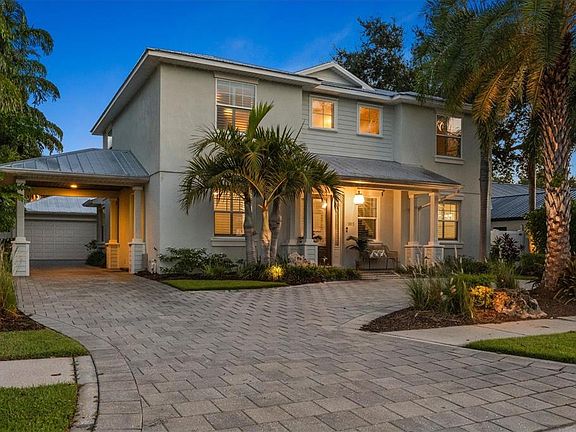 Professionally staged and beautifully refreshed, this stunning pool home in Sarasota’s coveted West of the Trail community shines bright and is ready for its new owners. Built in 2013, this 4-bedroom residence with a den, 3 full baths, and 2 half baths showcases exceptional craftsmanship and quality. Featuring impact-resistant windows and doors, soaring ceilings, crown molding, and engineered hardwood floors throughout this stunning home offers luxury and comfort. At the heart of the home, the chef’s kitchen impresses with stainless steel appliances, double ovens, and an induction cooktop, all designed for both style and functionality. The kitchen flows effortlessly into the spacious family room, creating an ideal space for everyday living and entertaining. The primary suite serves as a serene retreat with direct access to the outdoor lanai, offering a private sanctuary to unwind after a long day. Upstairs, you’ll find three additional bedrooms and two full baths, including a Jack-and-Jill setup shared by two bedrooms, and a separate guest suite that provides comfort and privacy for visitors. The home’s outdoor living area is truly the focal point, capturing the essence of Florida living. Enjoy the saltwater heated pool, expansive covered lanai, and separate cabana with an outdoor kitchen, dining area, and lounge space with a mounted TV. A fire pit surrounded by seating makes the perfect spot for evenings under the stars. A porte-cochere leads to an oversized detached 2-car garage with a mini-split system, ideal for comfort and flexible use. The property is framed by lush tropical landscaping, maintained year-round by a dedicated well and irrigation system, with landscape lighting accentuating both the front and back yards. Ideally located just minutes from Southside Village, home to boutique shopping, Morton’s Gourmet Market, and Sarasota Memorial Hospital. Walking distance to top-rated Southside Elementary School and a quick drive to Siesta Key Beach, one of the top-rated beaches in the U.S. and all the activities and restaurants of Downtown Sarasota.