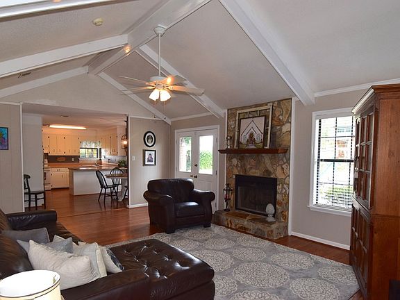 Beautiful ranch home with 3 spacious bedrooms and 2 full bathrooms that is nestled on a corner lot with .42 acres. This well kept home features a newer roof (only 3 years old), rocking chair front porch, beautiful hardwood and ceramic tile flooring, spacious great room with exposed ceiling beams & cozy fireplace, large kitchen with tons of cabinet and counter space alongside an eat in area, 5 x 16 laundry room with plenty or room for storage, formal dining room, attached double car garage, large fenced back yard with storage building remaining. This home won't last long! Call today to schedule your personal tour!