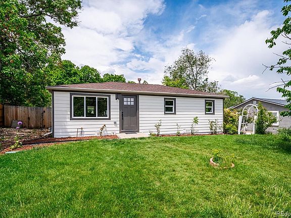 Welcome to this beautifully remodeled ranch style home in Edgewater. Seated on a massive nearly 10,000 SQF lot, this unique bright and open home has been completely remodeled from top to bottom. Inside you'll love the main living area, which boasts an open space for living, dining and kitchen. The eat-in kitchen features all new soft-close shaker cabinets, white quartz counters, and new stainless steel appliances. Two bedrooms can be found in the front of the home, along with a full bath in the hallway, complete with stellar brass finishes and custom tile work. Through the kitchen to the back you'll find the mudroom, which features a laundry area with a new stackable washer and dryer. In the back, the primary suite is MASSIVE and offers tremendous natural light, two walk-in closets, and an en-suite bathroom with dual vanity and custom tile work. The spacious backyard is sure to impress and offers a covered patio and easy access to the large detached 2 car garage. All new concrete driveway. All new windows. All new electrical. All new finishes. Updated plumbing, and much more! Located near Edgewater marketplace and Sloans Lake.