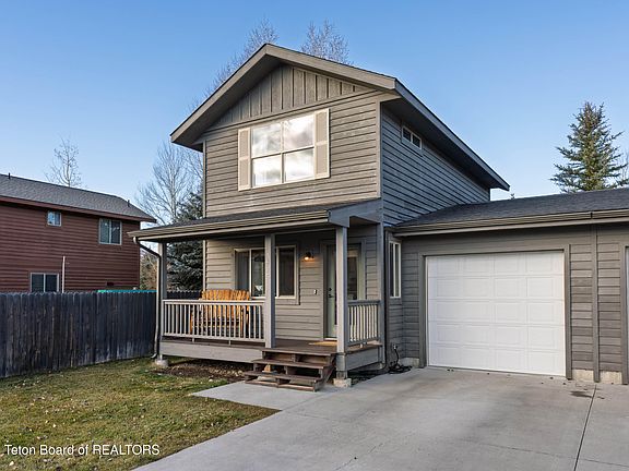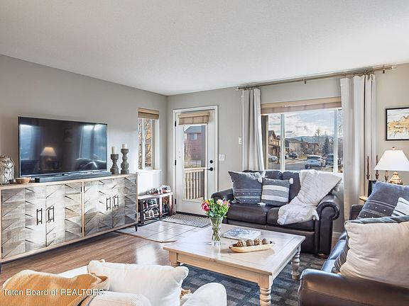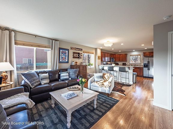 Highly desirable 2-bedroom, 1.5-bath Cottonwood Flats townhome in a convenient in-town Jackson location. This bright, open main level features plenty of natural light and a spacious kitchen with ample storage. Upstairs offers two roomy bedrooms with vaulted ceilings. Enjoy a covered front deck, private back deck with bike path access, plus an attached 1-car garage, washer/dryer, and ample storage. Pristine condition and ready to go. Close to schools, groceries, and the Teton County Trail System, with beautiful mountain views.