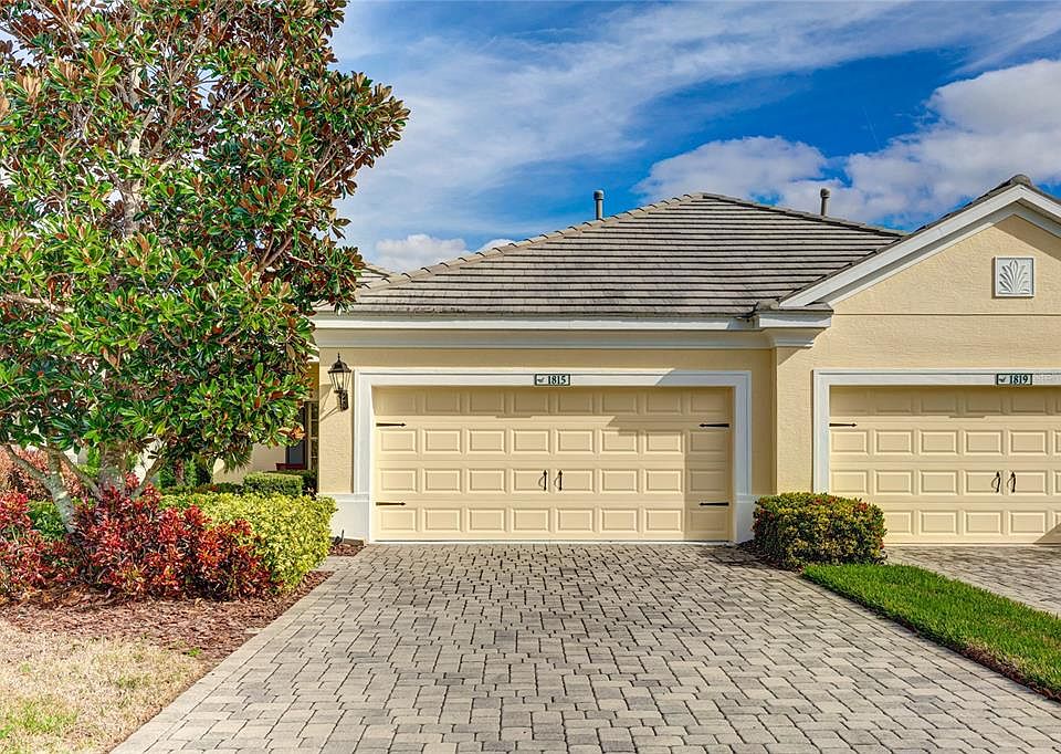 Discover lakefront living in the gated community of Eagle Trace! This inviting villa boasts 2 bedrooms, 2 bathrooms, and a versatile den, all situated on a prime water lot with a serene lakefront view. With just over 1,500 sq ft, it's perfect for those seeking comfort and practicality. Step through the front door, and you're greeted by a sparkling lake view that sets the tone for the entire villa. To the left, a versatile den awaits behind French doors, while to the right, a guest bedroom, guest bathroom, and laundry room provide convenience. The kitchen is open to the dining and family room and showcases upgraded cabinets, stainless steel appliances, granite countertops, a pantry, and an island with bar seating. The dining area offers a touch of sophistication with a decorative wall, while the family room features a tray ceiling and crown molding that extends throughout the main living areas. Large pocket sliders open up to the extended lanai with brick pavers, ideal for morning sunrise views or evening relaxation while overlooking the lake. The primary suite offers a gorgeous water view, with crown molding extending into the space. Two walk-in closets guide you to the ensuite bath, which features dual vanities and a spacious walk-in shower. Eagle Trace offers its residents a relaxed lifestyle complemented by a range of amenities, including a resort-style pool, spa, grilling area, tennis courts, pickleball courts, a playground, and two dog parks. Enjoy peace of mind with no CDD fee and the low HOA fee, which covers maintenance-free living. The convenient location in North Lakewood Ranch is near shopping, dining, entertainment options, and easy access to I-75 ensures you're never far from the action. Your lakefront villa awaits!