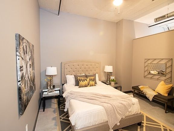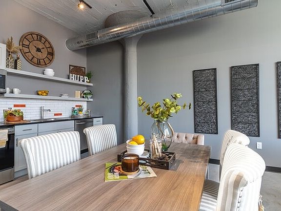 The Lofts at the HUPP, once a prominent Chevrolet dealership, is now a premier loft-style apartment building located in Downtown West St. Louis. Our 1 and 2 bedroom homes seamlessly blend industrial accents a tribute to the building's automotive past with modern design. Enjoy attractive amenities including a clubroom with a coffee bar, multiple lounge spaces with 65" smart TVs, a fitness center, and an outdoor entertainment deck with downtown views. Assigned parking is available in our on-site garage or gated lot. Inside each apartment, industrial features like sealed concrete floors, exposed concrete ceilings & walls, and historic replica aluminum windows are complemented by modern touches. All units include stainless steel appliances, a full-size washer/dryer, ceiling fans, and floor-to-ceiling windows.