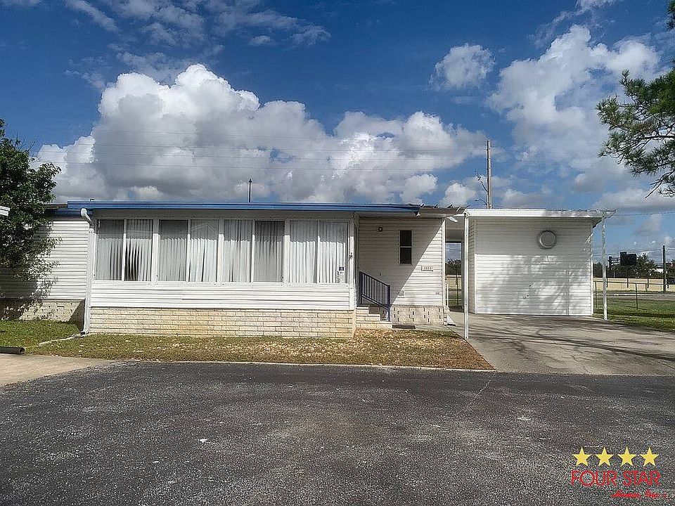 3 bedroom, 2 bath - Large open floor plan. Bright, airy kitchen with lots of workspace, a pantry, indoor laundry area and a breakfast nook. Sunny Florida room, great for plants and enjoying warm Florida winters. Two-year old AC. Newer Kitchen appliances, washer and dryer. Laminate flooring throughout. This great house is positioned so that there is ample parking, plus an over-sized shed with a workbench. It backs up to a beautifully landscaped area that is maintained by the park. It is one of the few homes built on a cement slab. Walking distance to pool, Lake Catherine and picnic pavilion. Active community with social activities, heated pool, exercise room, library, fishing dock, boat ramp and free RV/boat storage. Close to medical, shopping and attractions.