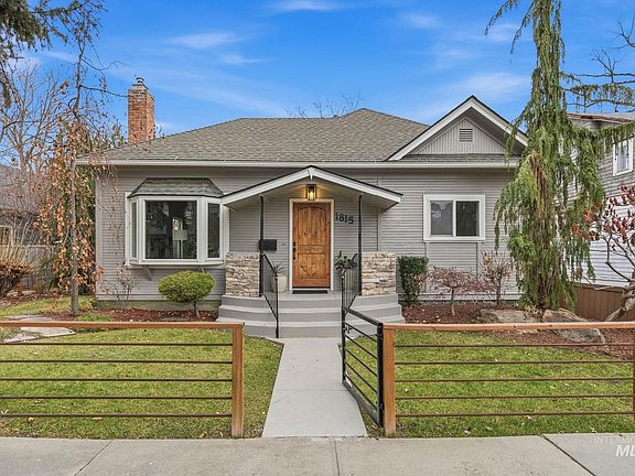 Experience timeless character blended with modern comfort in this beautifully cared-for, home. In the heart of Boise's Historic North End. Light-filled spaces are accentuated by 9’ ceilings, a sunny bay window, and cozy gas fireplace welcoming you into the spacious family room. The small but mighty kitchen is meal prep ready with granite counters, and custom solid wood cabinets. Refrigerator is included and updates include the just installed new oven/range combo in stainless steel. The primary suite offers two closets, granite countertop, and walk-in shower. New LVP flooring and fresh paint throughout provide a cohesive and clean/polished overall aesthetic. Step outside to Beautifully designed landscaping, which blends rock details, plants, grasses, flagstone patio, Trex-style decking, and more into a private and serene oasis, with soothing ambiance provided by the rock water fountain. Plenty of spaces for relaxing or entertaining. 2-car garage plus covered RV bay, and ADU potential make this home as functional as it is charming.