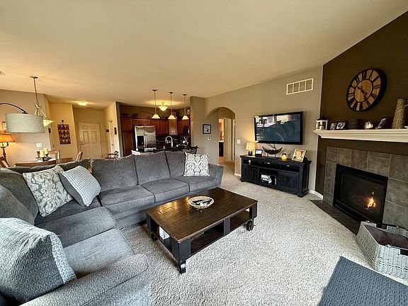 Desirable Ranch Style 1st floor end unit with a private entrance - 2br/2ba condo offering wonderful association amenities including a beautiful Clubhouse, Pool and Exercise Room! you will fall in love the moment you enter the ''Open Concept Style'' gem eat-in Kitchen boasting Granite Counters, Snack Bar, Stainless Appliances & Recessed Lighting, Cozy Great Rm features stunning Natural Gas Fireplace & Patio Doors leading to a concrete patio overlooking a natural prairie. Stunning Master Suite w/WIC & Master Bath w/Granite dual vanity, shower stall. Guest Bedroom w/WIC & Guest Bathroom w/Granite Vanity Top. Interior amenities are 2 panel doors, white trim, 9' ceilings plus a 2.5 car attached garage. Pride of Ownership shines throughout! WOW!