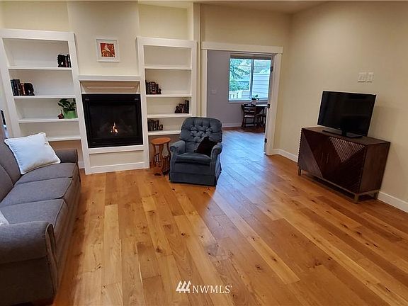 Youll feel right at home in this like new 3+ bedroom, open concept home that includes wood floors & a gas fireplace w/ stunning built-in cabinets. The very well done +bedroom is a flex space/bonus room w/ a closet & covered deck access. The open concept kitchen features abundant cabinets, stunning stone countertops & perfectly coordinating tile backsplash. Behind that custom barn style door? A walk-in pantry. The spacious bedrooms include a huge primary suite w/ a modern, spa-like bathroom & walk-in closet. This one level home has zero steps from the attached 2 car garage & front entrance. The 10,000+ sq. foot yard is fully fenced & level. Just a short walk to the beach, two parks, walking trails & community stores. New heat pump with A/C