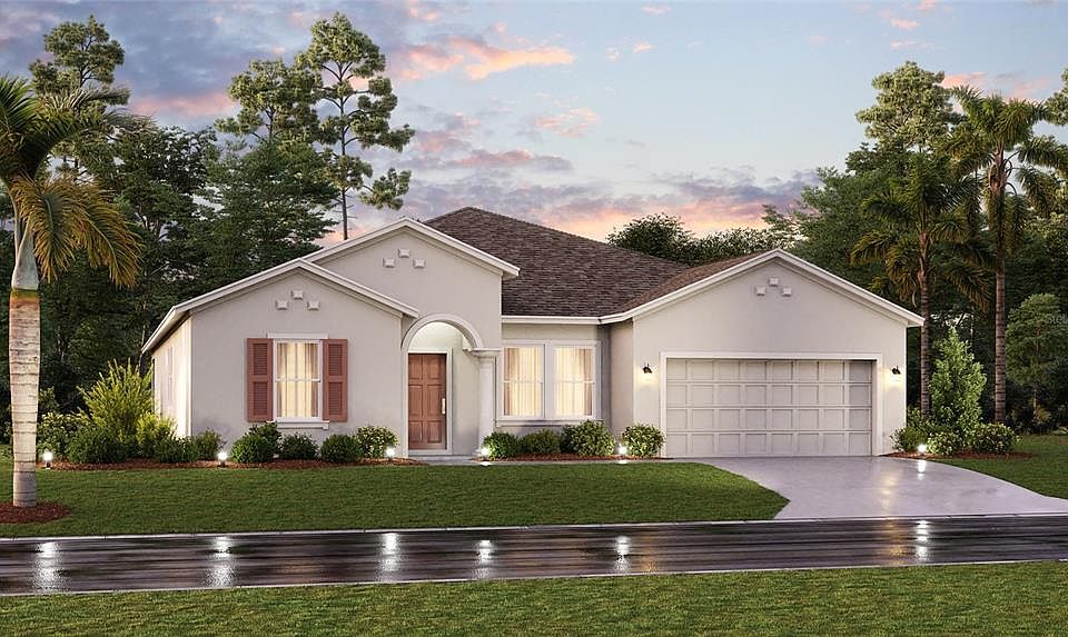 Under Construction. Welcome to the warm and inviting Inverness. This home has four bedrooms and three and a half bathrooms. This beautiful home has a flex room, dining room, a kitchen with a large walk in pantry, a powder room, a family room, a game room and a laundry room with a washer and dryer. The owner suite has a spacious bathroom with two walk in closets. One of the other bedrooms has a bathroom attached, and the other two rooms are close in proximity to each other and the other bathroom. This home comes equip with a two car garage. Everything’s included in your new dream home. Enjoy connectivity with no dead spots, green building features and solar save you money and help the environment, plus new energy conscious appliances. This community is the perfect place for any family looking for a rural area with an easy drive to all that the Clermont and Orlando areas have to offer. Trinity Lakes is ideal for homeowners looking for a welcoming community in Lake County, in Groveland. Amenities include a clubhouse with resort style pool, playground, fitness ctr and park!! Located just 45 minutes from the Orlando International Airport, close to the Lakeridge Winery. The town's close proximity to Florida's Turnpike and other major Central Florida highways, means residents can easily access surrounding areas.