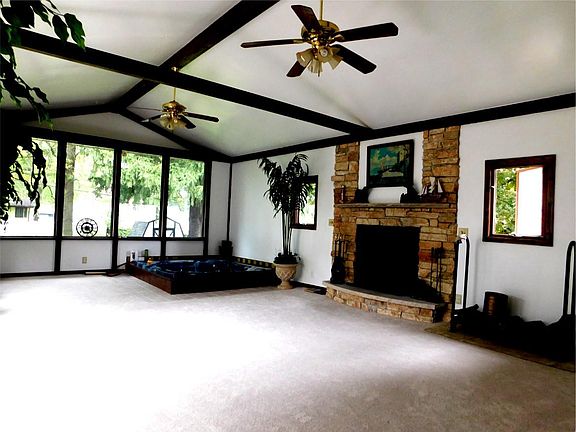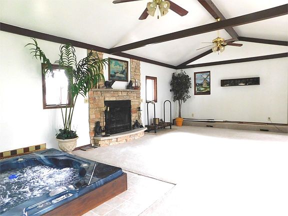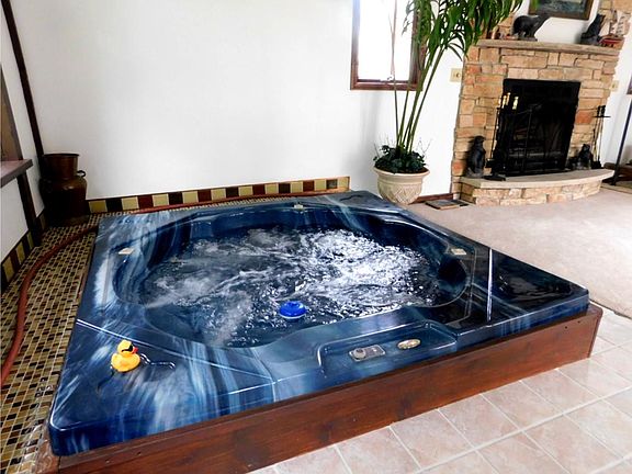Surprise! Stunning great room 20x18 addition with cathedral ceiling, fireplace and spa! Wall of windows overlook nice yard. Neat and clean kitchen with counter & stools. Current living room could be a formal dining room. One large and one small main floor bedrooms with beautiful remodeled bath. Lower level could be an in law suite with 2nd kitchen, rec room, and office. 2 stoves, 2 refrigerators. Lower level laundry closet. Nice workshop! 2018 new roof, 2020 - 5" gutters, new copper plumbing, new carpet throughout. 2018 central air.
