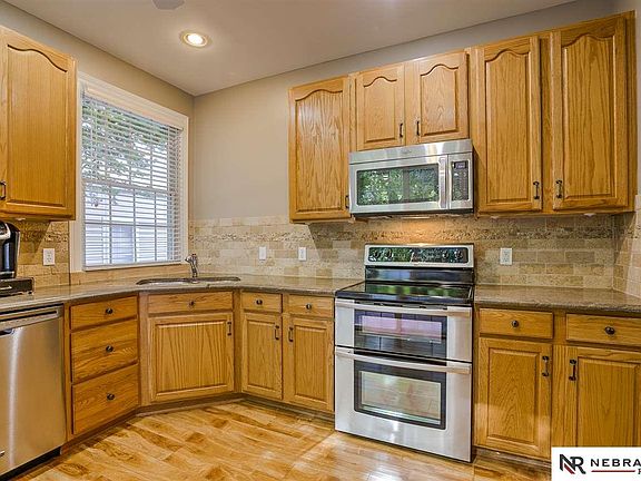 Enjoy year round low maintenance living right here in Merrifield Village. This ranch villa has lots of updates and great features! Kitchen has granite counters, updated backsplash, laminate flooring, stainless steel appliances and a sweet double oven/range set up! The carpets have been professionally cleaned and the main floor freshly painted, ready for you to move right in and enjoy! The master is spacious and has a walk in closet and a full bath with double sinks. Exterior is vinyl siding for super low maintenance and a 1 year old roof. Lower level has a huge rec room and ¾ bathroom with shower as well as tons of storage. Main floor laundry. Super convenient location that is close to shopping, hospital, recreation, and Lake Zorinsky. HOA takes care of lawn care and snow removal.