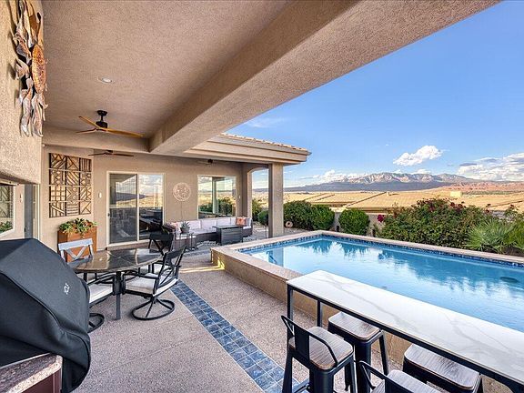Beautifully crafted & recently updated, a spectacular, sprawling Stone Cliff property is ready for its new owners. 4 lovely bedrooms, 1 of which is an attached private casita, 5 baths, w/a separate dedicated office, grand kitchen w/dining area off of the lovely patio w/ outdoor kitchen adjacent to the newly renovated sparkling pool & spa overlooking Southern Utah's sweeping vistas. A large motor court & oversize triple garage provide ample off-street parking. Remember the incredible resort-like amenities that come w/ living in St. George's premier guarded & gated neighborhood. Live high on a secure plateau ridge just minutes from dining, shopping, Intermountain Medical Ctr, historic downtown St. George & the regional airport make this home a wonderful choice.