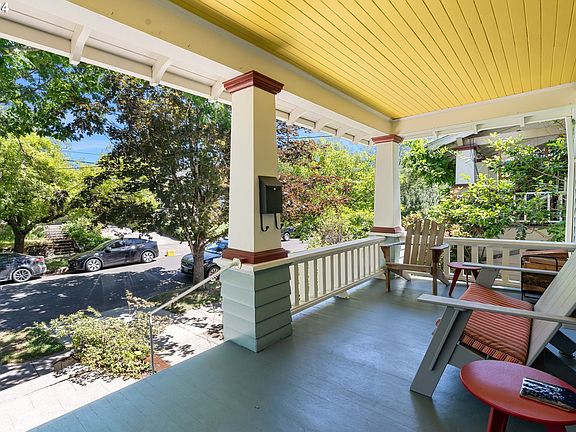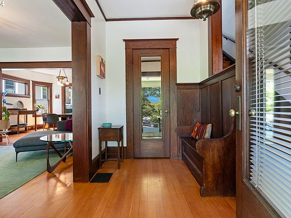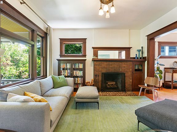 Exceptional Upgraded Craftsman! A stunning 1911 arts & crafts home, enhanced with modern updates that complement its original charm! You'll open the front door to a formal entry with the original built-in bench; unpainted woodwork, several restored original light fixtures, and refinished fir floors throughout this extraordinary home. The main level flows gracefully from a large classic sitting porch into the entry, to the living room with built-ins and a wood burning fireplace, to the formal dining room. The remodeled kitchen features caesarstone countertops; tile backsplash; a newer gas stove and hood; custom cabinetry; back yard access, and a breakfast nook. Lastly on the main floor, you'll find a bedroom, a remodeled full bath, and irreplaceable features such as the original laundry chute and linen closet. Upstairs, the primary bedroom offers views of Mt Tabor, a renovated bathroom (added in 2001, remodeled 2017); a comfortable media/family room, and third bedroom with ample storage. Full basement houses laundry, storage, and provides easy loading in and out, via the tuck-under garage. Outside, the fully fenced, private back yard with mature plantings, patio, and a strategic dry well diverts water from the home (as well as a rain garden in front), and you'll watch the world go by from the elevated porch. This house includes numerous high quality upgrades, including new plumbing, a new roof, new interior and exterior paint, many double-paned wood windows, and custom improvements in recent years. Situated between Hawthorne and Division just blocks from New Seasons, with Mt Tabor trails nearby: it's an ideal location! 41st is a designated bicycle street and close to bus lines, ensuring convenient transportation options. Truly special- systems and aesthetics upgraded and original features maintained by a thoughtful owner over the past 23 years.